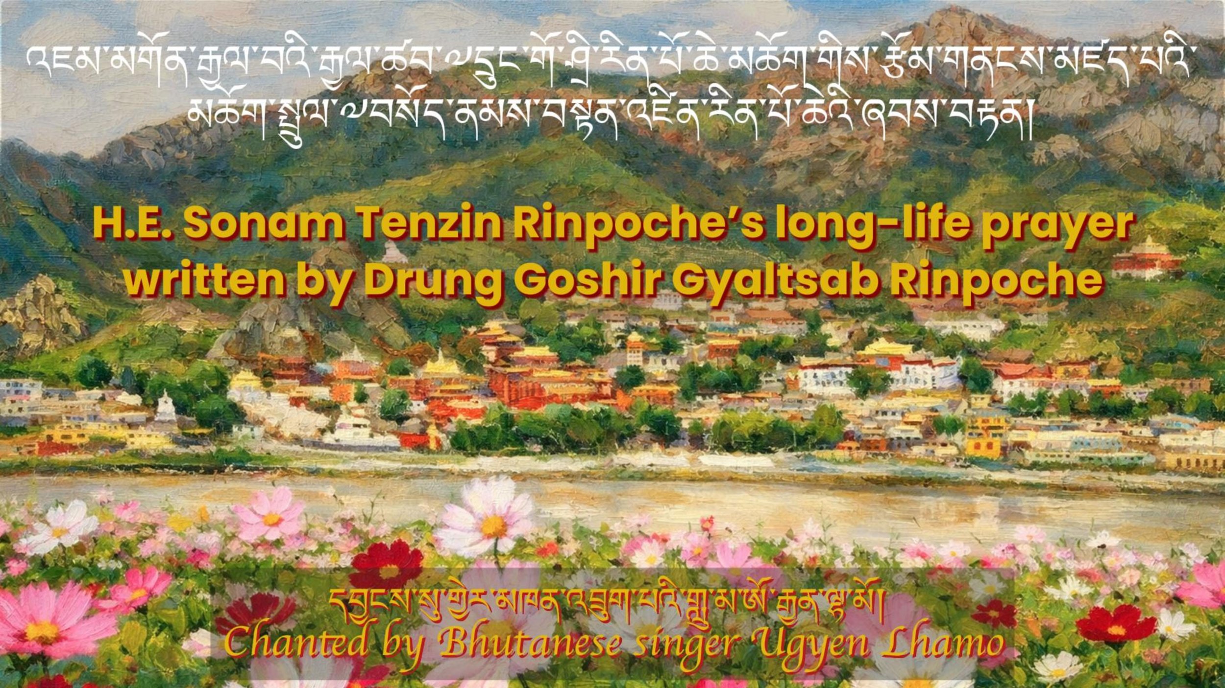 Background music: H.E. Sonam Tenzin Rinpoche’s long-life prayer, written by Drung Goshir Gyaltsab Rinpoche, chanted by Bhutanese singer Ugyen Lhamo.